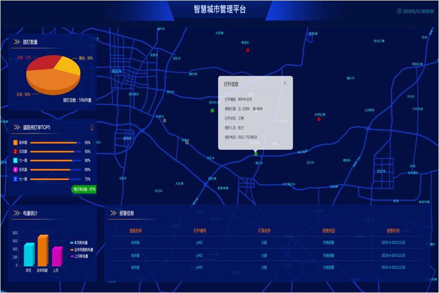 远程监测运行能耗统计分析:故障率、亮灯率、亮灯时间、能量计量……